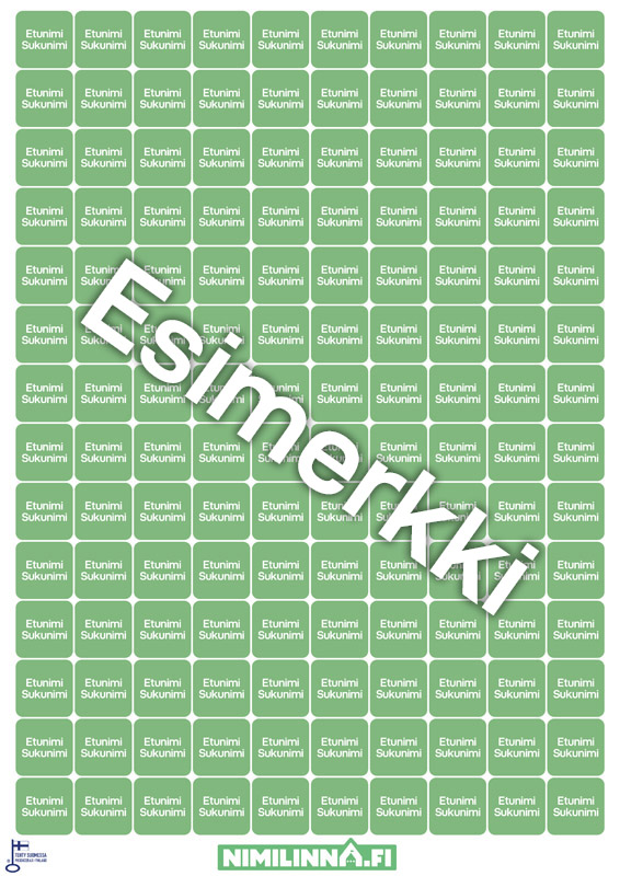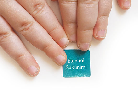Personoi omat nimitarrasi - Valitse tarran ja tekstin väri sekä syötä haluamasi nimi.
